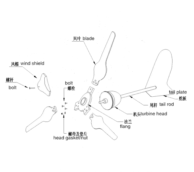 6、獨(dú)特的尾舵預(yù)偏設(shè)計(jì),自動(dòng)精確對(duì)準(zhǔn)迎風(fēng)方向,提高輸出功率同時(shí)兼顧調(diào)整和強(qiáng)風(fēng)保護(hù)。