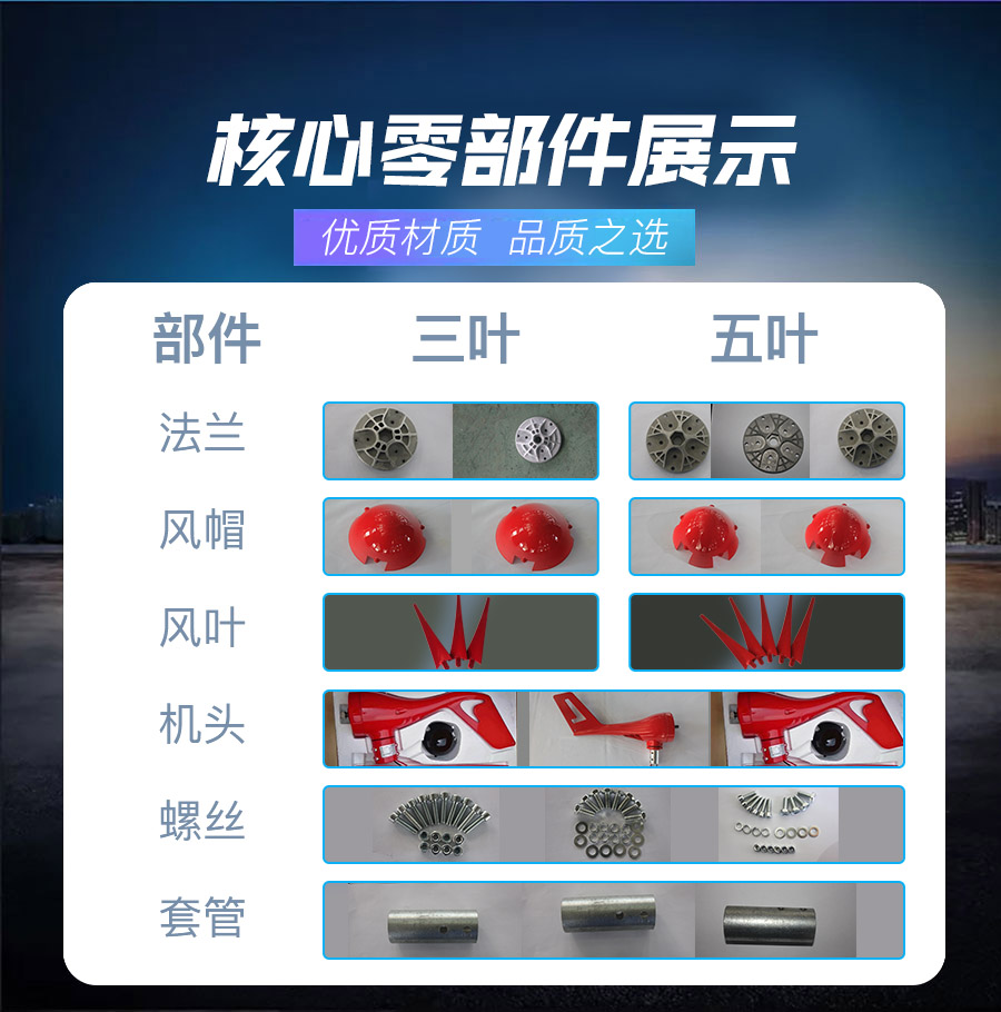 3、風葉采用高強度復合材料,強度高,韌性好,防紫外線,防腐蝕,抗大風,具有良好的氣動性能。