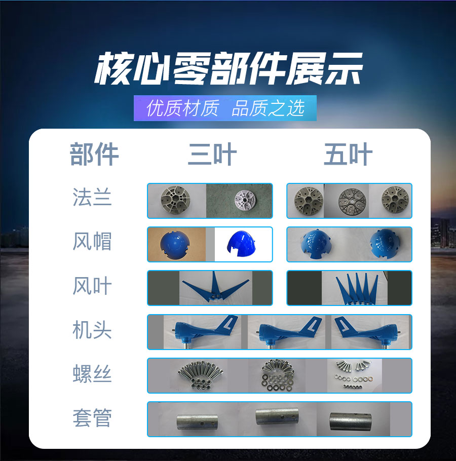 3、風(fēng)葉采用高強(qiáng)度復(fù)合材料,強(qiáng)度高,韌性好,防紫外線,防腐蝕,抗大風(fēng),具有良好的氣動性能。
